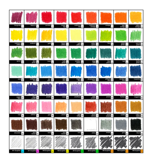 - 63 Artist-quality pigment leads resistant to breaking, ensuring rich pigment and detail.
